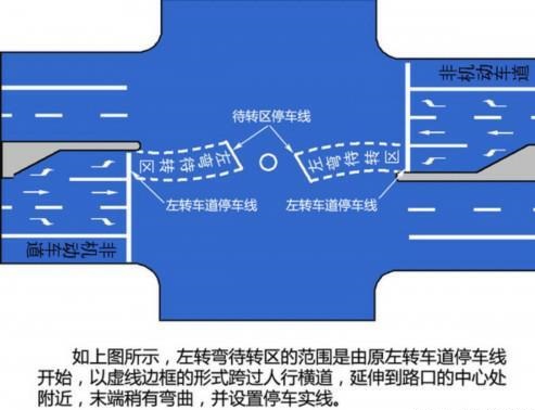 設(shè)置待轉(zhuǎn)區(qū)的目的,是為了增加左轉(zhuǎn)車道的蓄車量,減少駕駛員左轉(zhuǎn)通過路口的等待時(shí)間,在左轉(zhuǎn)通行時(shí)間內(nèi),讓更多的左轉(zhuǎn)車順利通行,提高路口的通行能力。
